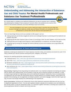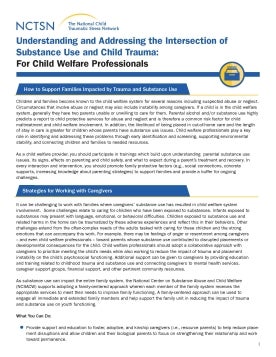 Provides child welfare professionals with guidance on addressing the intersection of caregiver substance use and child trauma