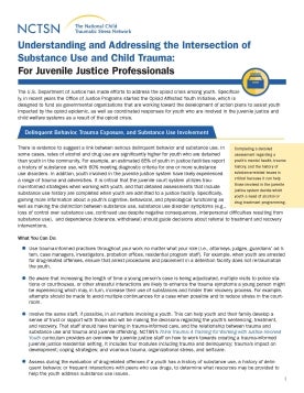 Helps juvenile justice professionals understand how trauma and substance use can influence youth behavior and involvement in the justice system.