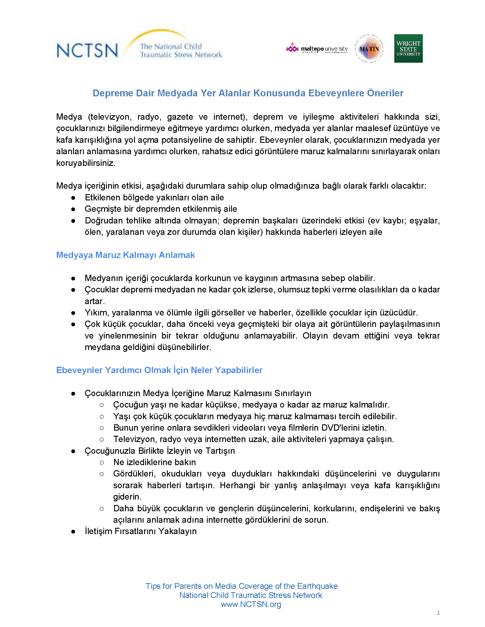 Depremin Medya Kapsamına Dair Ebeveynlere Öneriler (in Turkish) [1]