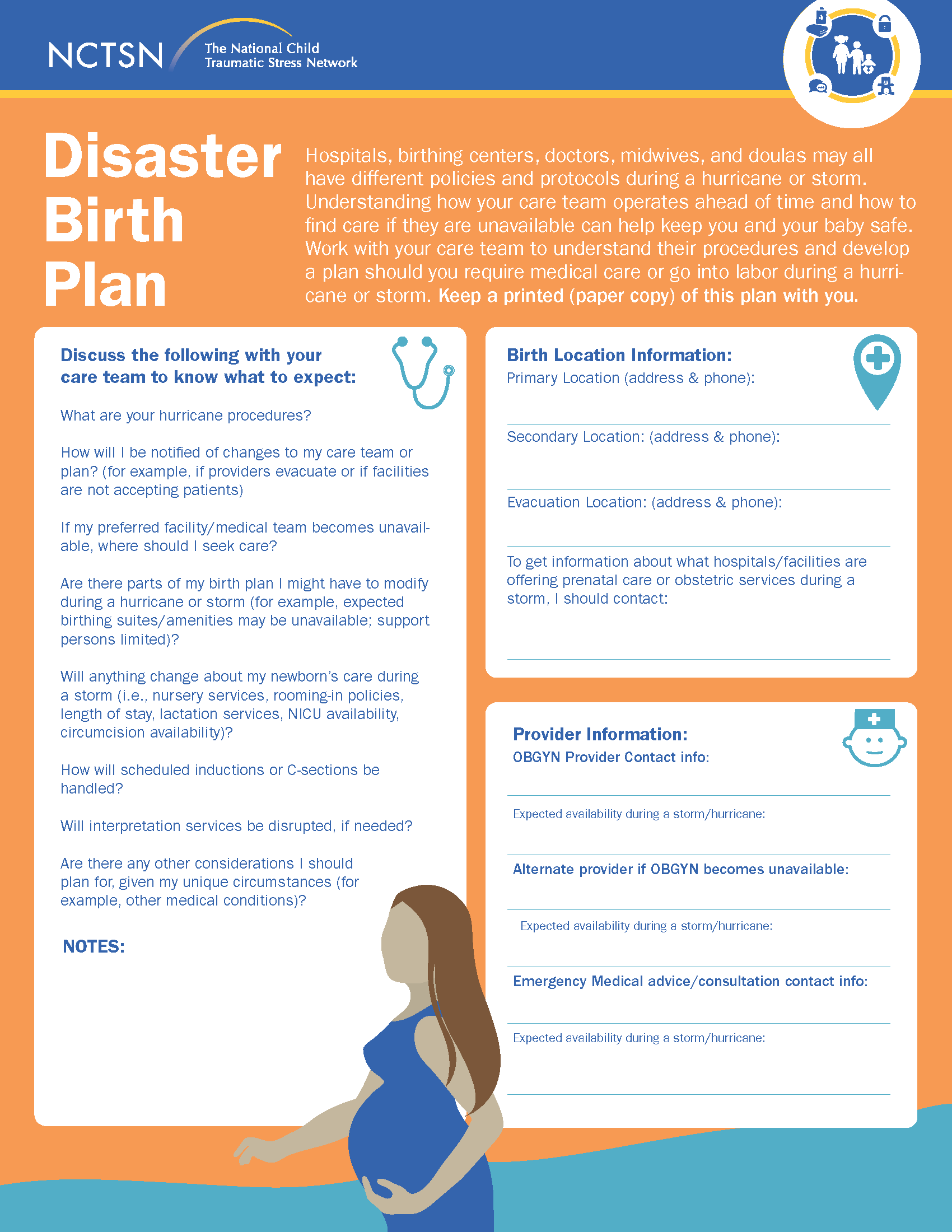 Helps expectant parents and their care teams plan for labor and delivery during hurricanes or severe storms. This tool can be used to outline key contacts, medical details, and backup birth locations so you can stay informed, supported, and safe.
