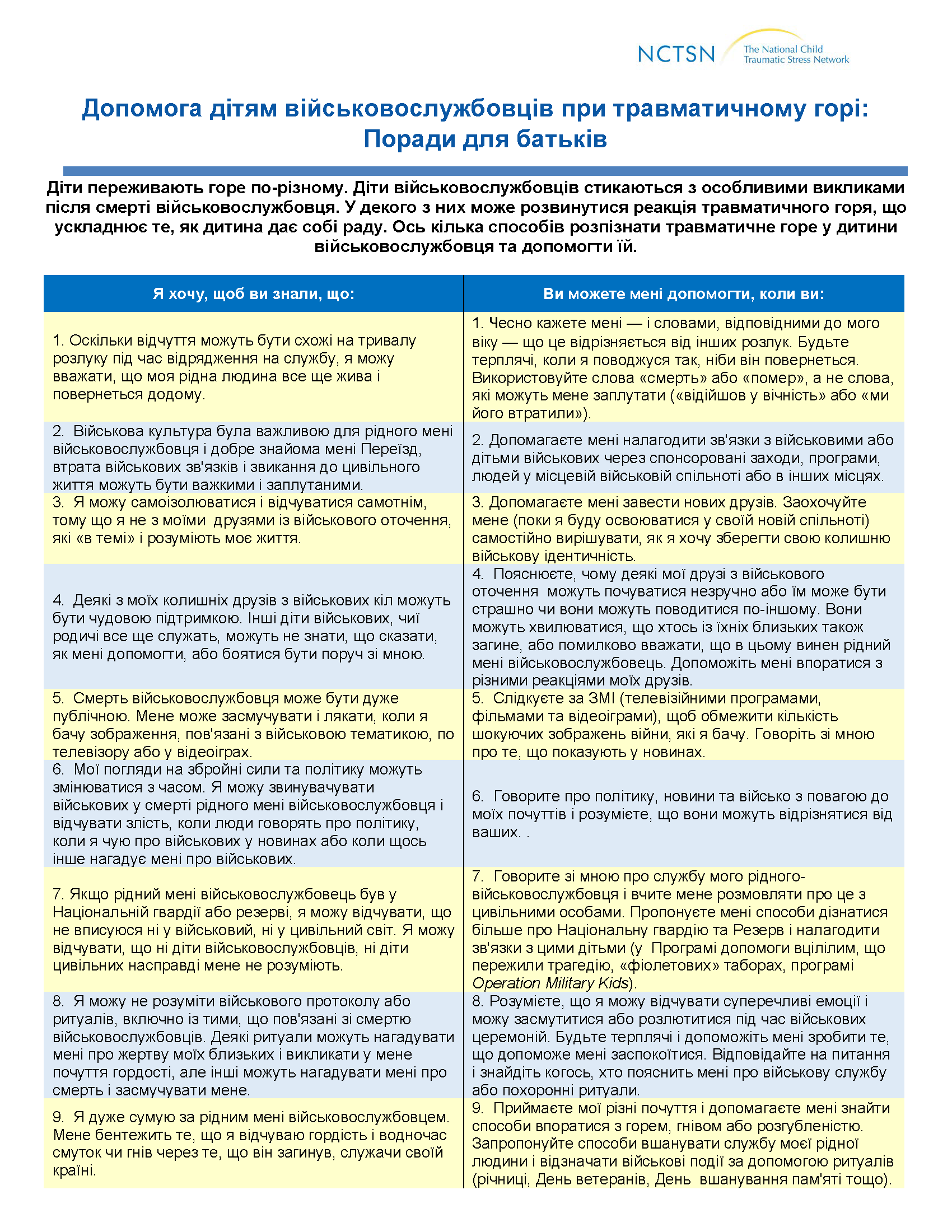 Helping Military Children with Traumatic Grief: Tips for Parents (in Ukrainian) [1]