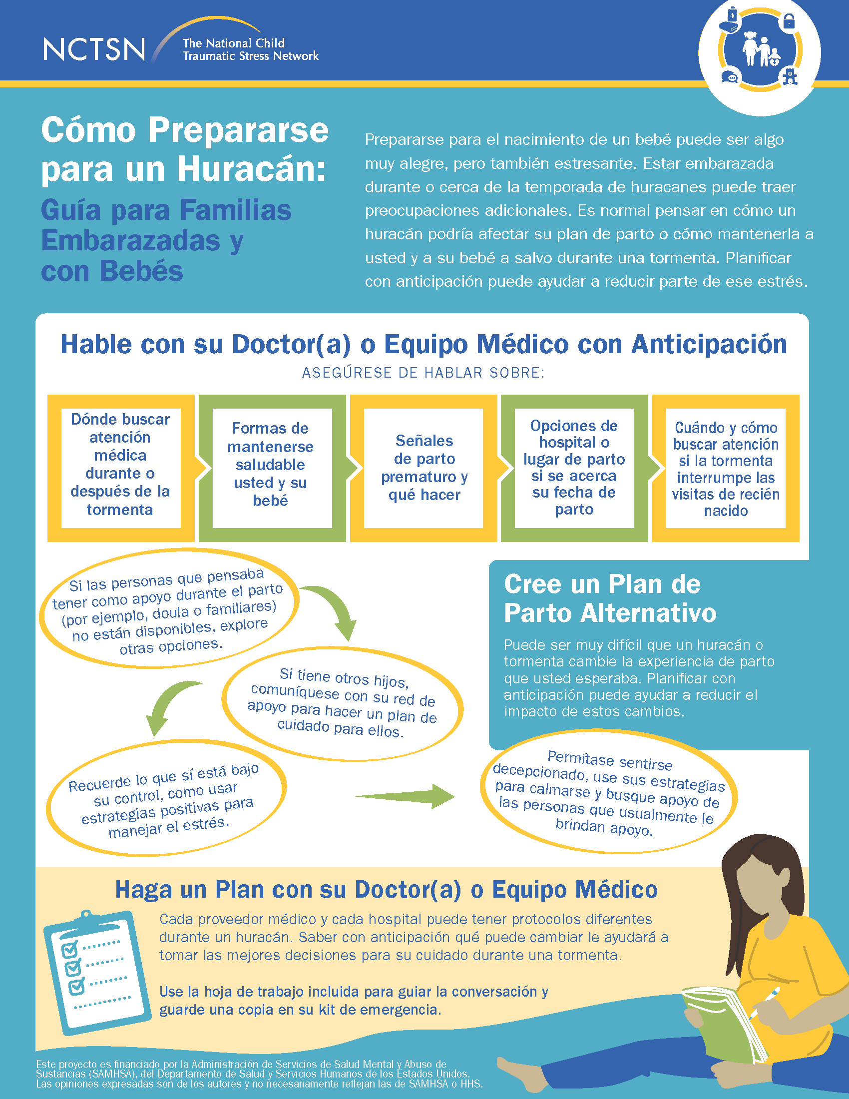 Helps new and expectant parents prepare for hurricanes by outlining practical steps to protect their health, baby, and birth plan. It includes planning tools, safety tips, and emotional coping strategies to reduce stress before, during, and after a storm. Translated 2026.
