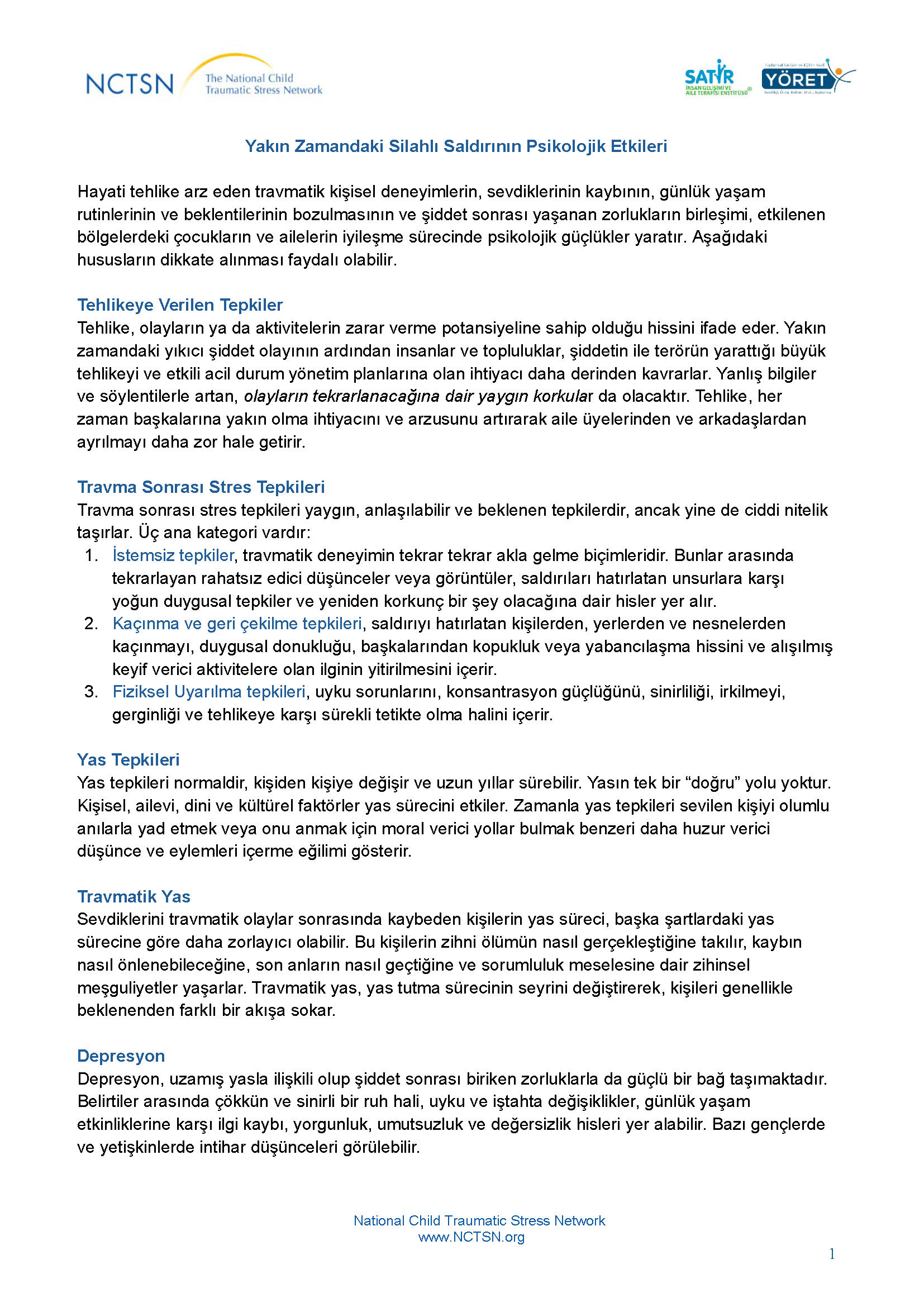 Psychological Impact of the Recent Shooting (in Turkish) [1]