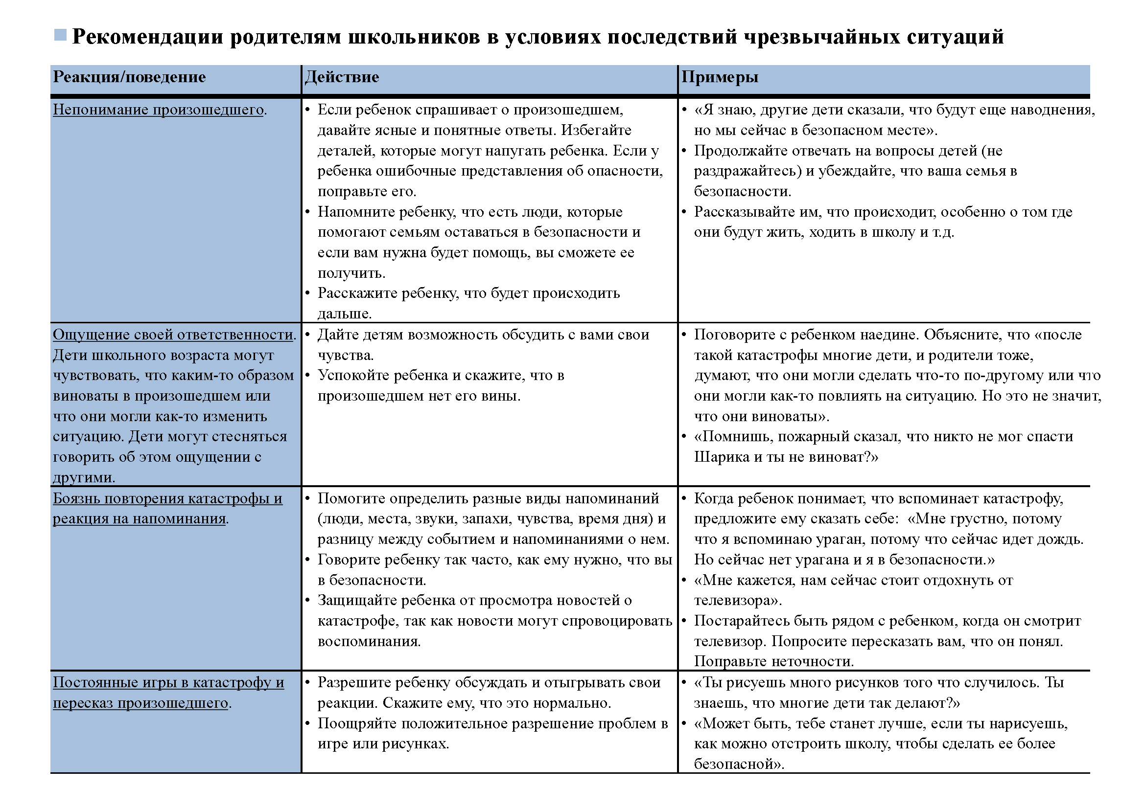 Is a handout from Psychological First Aid Field Operations Guide (PFA). This handout provides parents with common reactions after a disaster, ways to respond to those reactions, and examples of things you can say to your school-age child. Translated 2022.