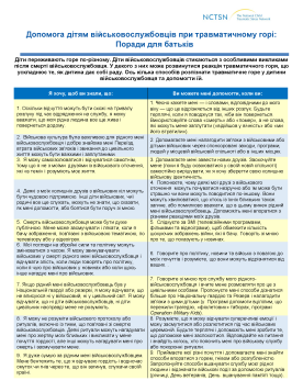 Offers information on military children who are grieving the loss of a loved one. This tip sheet describes how military children dealing with trauma and grief responses may be feeling and what parents can do to help. Translated in 2025.